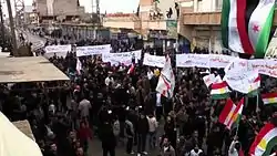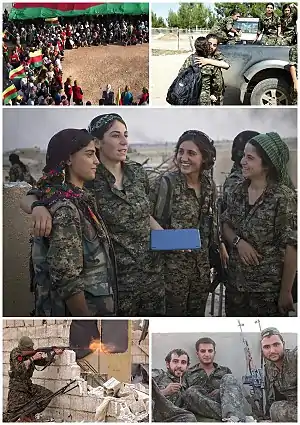 ![]() أعلى اليسار: أنصار PYD في جنازة | |