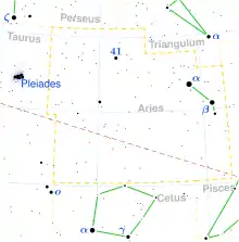 الحمل كوكبة مكونة أساسا من ثلاث نجوم لامعة، على شكل مثلث.[1][2][3] الحمل ينتمي إلى دائرة البروج، يتمركز في أول علامة منها. نقطة الاعتدال الربيعي التي فيها يقطع مسار الشمس خط الاستواء توجد في كوكبة الحوت، قبل 2000 سنة كانت في كوكبة الحمل، وقد انتقلت إلى الغرب بفعل تذبب 26000 سنة ل محور الأرض. هذا الكوكبة يحتوي على كثير من النجوم الثنائية والمتعددة. ألمع نجم ألفا هي حمل، وثاني ألمع نجم هي الشرطان بيتا، لكن ثالث ألمع نجم لا يحمل أي حرف يوناني حمل41. العثور على الحمل ليس بالأمر الصعب: النجمين الأساسيين فيه يوجدان في شرق مجموعة الثريا.
