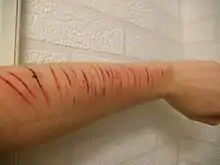 - خدش (رسالة) على ذراع الشخص.