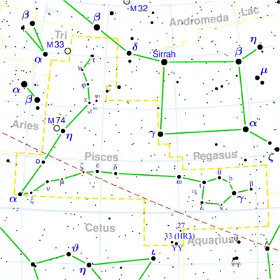 | ألمع نجم | η Psc (3.62قدر ظاهري) |