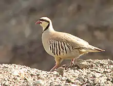 يعيش في الشام 4 أنواع من طيور الطرائد، أو الطيور الأرضية، وقد أُُدخل نوعان آخران لغرض الصيد. من بين هذه الأنواع، يُعتبر الحجل الشقّار الأكثر شيوعًا وانتشارًا في كامل أنحاء القطر،[106] فهو يعيش في الأراضي الزراعية بما فيها البساتين والحقول والكروم، وفي المروج الجبلية والغابات والسهوب، بل وفي الصحاري أيضًا، إلا أنه يختفي في أقصى الجنوب والشرق حيث تشح مصادر المياه بشكل كبير، ويختفي معظم الغطاء النباتي الذي تحتاجه هذه الطيور للاقتيات والتظلل.[106] يستبدل حجل الرمال النوع سالف الذكر في المناطق الصحراوية، على الرغم من أنه ينتشر أيضًا في الأقسام الشمالية من الشام حتى الحدود التركية، ويعود سبب شيوعه في الصحراء إلى أنه أكثر تأقلمًا مع حياتها القاسية، فلونه الرملي يساعده على التخفي، وهو قادر على البقاء لفترات طويلة من دون ماء وأن يُحلّق لمسافات أبعد بحثًا عنها.[107] ينتشر الدرّاج الأسود في القسم المتوسطي من بلاد الشام، وهو طائر مميز يسهل تمييزه عن غيره من الطيور الأرضية الشامية عن طريق اللون الأسود اللمّاع لريش صدر ورأس الذكر، ويمكن العثور عليه من حدود الشاطئ الغربي للبحر الميت عبر بحيرة الحولة، وصولاً إلى سهل البقاع وجبل لبنان وسوريا الداخلية والساحلية، غالبًا في المناطق المنبسطة ذات الأشجار القمئية بالقرب من السبخات.[108][109] أما آخر أنواع الطرائد البلدية في الشام، فهي السمانى المألوفة، المعروفة محليًا باسم "السمّن" أو "السمّان" أو "السلوى"، وهي نوع الطرائد الوحيد المهاجر، وقليل منها مقيم.[110] تُشكّل هذه الطيور هدفًا مغريًا للصيادين، بفعل أعدادها الكبيرة التي تعبر الشام سنويًا، حيث تُلاحق أسرابها على الدوام ويُقتل منها الكثير، لكنها على الرغم من ذلك تبقى وفيرة العدد، وتُشكل مصدر غذاء رئيسي للضواري الشاميّة. يُمكن العثور على هذه الطيور على سفوح الجبال والتلال وفي السهول وأراضي الأشجار القمئية.[111] لهذه الطيور أهمية رمزية عند اليهود والمسلمين، حيث أنها ذُكرت في التوراة والقرآن وقيل بأن الله أرسلها على بني إسرائيل عندما حل بهم الجوع بعد خروجهم من مصر.