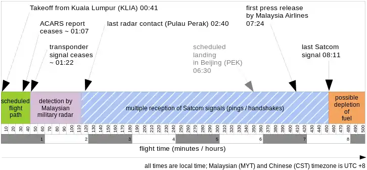 | الوقت في الطائرة | الحدث | الوقت في ماليزيا | وقت (UTC) |