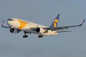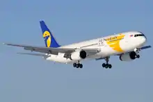 A MIAT Mongolian Airlines بوينغ 767 on short final to مطار شيريميتييفو الدولي in 2012.