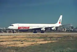 الطائرة المتسببة في الحادث هي من نوع دوغلاس دي سي 8-61 والمصنوعة في عام 1968 المسجلة بـ (C-GMXQ) كانت تديرها الشركة الكندية نولسير (بالإنجليزية : Nolisair ) و التي كانت تدير عملياتها تحت اسم نيشين أير ( بالإنجليزية : Nationair) . الخطوط الجوية النيجيرية قامت باستئجار الدي سي 8 من شركة نيشين أير لنقل الحجاج النيجيريين من وإلى مكة.[2]