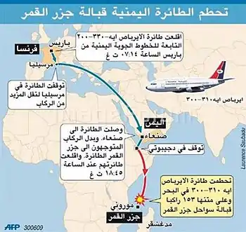 |CitationClass=تم تجاهله (مساعدة); تحقق من التاريخ في:|تاريخ أرشيف=(مساعدة) - سقوط طائرة يمنية في جزر القمر وعلى متنها 142 راكباً المؤتمر نت نسخة محفوظة 06 مارس 2016 على موقع واي باك مشين.
