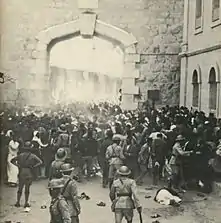 | ثورة البراق وثورة الكف الأخضر | 1929 | اشتباكات عنيفة اندلعت في مدينة القدس، أيام الانتداب البريطاني على فلسطين، إثر عدم جدوى الإضراب والمقاطعة.[48] |