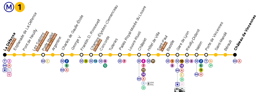 |CitationClass=تم تجاهله (مساعدة) - "معلومات عن الخط 1 لمترو باريس على موقع catalogue.bnf.fr". catalogue.bnf.fr. مؤرشف من الأصل في 11 ديسمبر 2019. الوسيط