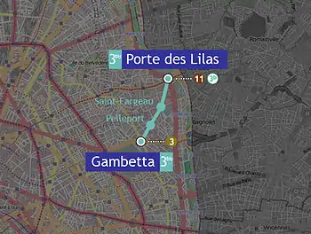 | الخط 3 بيس لمترو باريس Ligne 3bis du métro de Paris | |