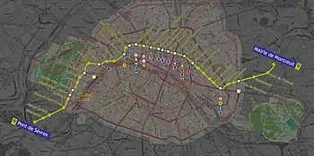 يمر الخط 9 عبر عدة مناطق سياحية وثقافية هامة وذات حركية كبيرة في باريس وضواحيها الملاصقة، وهي من الغرب إلى الشرق: