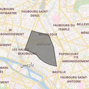 |CitationClass=تم تجاهله (مساعدة) - "معلومات عن الدائرة الثالثة في باريس على موقع openstreetmap.org". openstreetmap.org. مؤرشف من الأصل في 2 يناير 2018. الوسيط