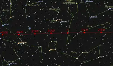 | معلومات الرصد حقبة حقبة اعتدالان حقبة | |