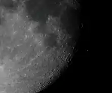 ![]() صورة لمرور القمر أمام النجم العملاق الأحمر الدبران واختفاءه لفترة زمنية يسيرة |