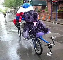 تم تصميم "Buddy Bike" للسماح للطفل بالجلوس على السرج الأمامي مع وجود شخص بالغ على المقعد الخلفي والتوجيه باستخدام مقود طويل جدًا. [8]