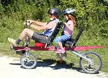 يشير مصطلح مترادف إلى ترتيب المقاعد (من الأمام إلى الخلف، وليس جنبًا إلى جنب) ، وليس عدد الركاب. تسمى الدراجة التي يقودها اثنان من الدراجين جنبًا إلى جنب بالدراجة <a href="https://en.wikipedia.org/wiki/Sociable" rel="mw:ExtLink" title="Sociable" class="cx-link" data-linkid="26">sociable</a> .