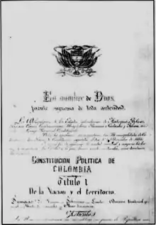 الدستور الكولومبي لعام 1886 هو الدستور الذي أنشأ جمهورية كولومبيا، التي كانت تسمى الولايات المتحدة الكولومبية قبل عام 1886. جاء ذلك بعد أن ألغى تحالف الليبراليين والمحافظين المعتدلين الهيمنة الليبرالية واضعين قائد حركة التجديد السياسي رافاييل نونيث في السلطة والذي قضى على النظام الفيدرالي للولايات المتحدة الكولومبية، وأصدر دستور كولومبيا لعام 1886 عوض دستور ريونيجرو. لتسمى رسميا "جمهورية كولومبيا".[1]