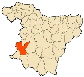 تبلغ مساحتها 150 كلم 2 أي 15009 هكتار موزعة كمايلي : - 3450 هكتار صالح للزراعة أي نسبة 23 % من المساحة الإجمالية. - 8254 هكتارغابات وأراضي رعوية أي نسبة 55% من المساحة الإجمالية. - 3305 هكتارأراضي بور أي نسبة 22% من المساحة الإجمالية. عدد السكان 7480 نسبة حسب تعداد 2008م.