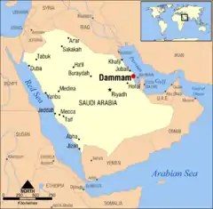 الدمام مدينة سعودية تقع على ساحل الخليج العربي، وهي حاضرة المنطقة الشرقية ومركزها الإداري وأهم مدنها؛[4] فهي الميناء الرئيسي في المنطقة نظراً لأهمية موقعها على ثلاث جهات من الخليج العربي ومن الشمال والشرق والجنوب، وتعدّ مركزاً سكنياً وتجارياً وتضم الهيئات الإدارية للمنطقة والدوائر الحكومية وعلى رأسها مقر إمارة المنطقة الشرقية.