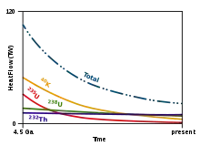 عندما بدأ الدهر السحيق كان تدفق حرارة الأرض يعادل ثلاثة أضعاف ما هو عليه اليوم، ولا يزال ضعف المستوى الحالي عند الانتقال من الدهر السحيق إلى دهر الطلائع (قبل 2,500 مليون سنة). كانت حرارة الفائضة نتيجة لمزيج من بقايا حرارة التنامي الكوكبي وحرارة اللب الداخلي للأرض ومن تفكك العناصر المشعة.