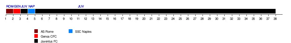 | 1 | يوفنتوس (C) | 38 | 29 | 4 | 5 | 77 | 27 | +50 | 91 | تأهل إلى مرحلة المجموعات في دوري الأبطال |
