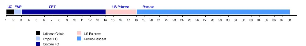| 17 | كروتوني | 38 | 9 | 7 | 22 | 34 | 58 | −24 | 34 | |