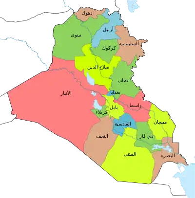 | محافظات العراق التي لا توجد الأندية في بطولة دوري فوكس العراقي الممتاز 2016-2015 | ||||||