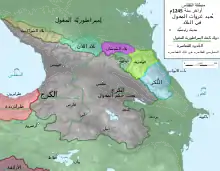 ![]() الدولة الإلخانيَّة في أقصى امتدادها، على خريطةٍ تُظهر الحُدود السياسيَّة المُعاصرة لِلشرق الأوسط | ||||||||||||||||||||||||||||||||||||||||