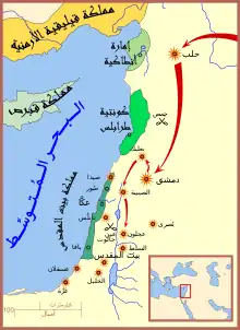 لم يتوقَّف هولاكو طويلًا في مراغة، بل إنَّهُ سُرعان ما أمر بِالتوجُّه إلى الشَّام مُنتهزًا فُرصة أوضاعها المُتردية، تدفعهُ نشوة النصر إلى التقدُّم والمُتابعة.[58] وكان هولاكو قد أرسل، أثناء حصار بغداد، فرقة عسكريَّة بِقيادة أريق نوين، استولت على أربيل،[59] من ثَمَّ أشرف المغول على البلاد الشَّاميَّة، التي كانت آنذاك تحت سيادة ثلاث قوى هي: المُسلمين المُتمثلين بِالسلاطين والأُمراء الأيُّوبيين، والصليبيين، والأرمن في قيليقية. أمَّا السلاطين والأُمراء المُسلمون، فقد حكموا مُدن ميافارقين، وحصن كيفا، والكرك، وحلب، وحِمص، وحماة، ودمشق، إلَّا أنَّهم افتقروا إلى رابطةٍ اتحاديَّة، فكان كُل أميرٍ يعمل مُستقلًّا عن الآخر، ما أضعف قُوَّتهم أمام المغول. أمَّا الصليبيُّون الغربيُّون فقد وقفوا موقف المُتردد من المغول باستثناء بوهيموند السادس أمير أنطاكية، الذي انضمَّ إلى الحركة المغوليَّة وأيَّدها واعترف بِسُلطان هولاكو على إمارته سنة 1260م،[ْ 20] يدفعه إلى ذلك مُصاهرته لِلملك الأرمني حيطوم الأوَّل، الذي كان حليفًا لِلمغول ويُشجعهم على قتال المُسلمين والقضاء عليهم، وسبق له أن سافر بِنفسه إلى قراقورم لِتقديم فُرُوض الطاعة والولاء لِلخاقان الأكبر.[ْ 21] كان الناصر يُوسُف بن مُحمَّد الأيُّوبي، صاحب دمشق وحلب آنذاك، أقوى الأُمراء الأيُّوبيين، وقد أوجس خيفةً من التقدُّم المغولي، وقدَّر أنَّ هولاكو وجُنُوده سوف يستولون على الشَّام إن عاجلًا أو آجلًا، وأنَّ بلاده لن تجد من يحميها من المغول أو من مماليك مصر (الذين خلفوا الأيُّوبيين في حُكم مصر وتطلَّعوا إلى ضم الشَّام تحت جناحهم)، لِذلك أرسل ابنه العزيز مُحمَّد إلى هولاكو يحمل الهدايا والتحف، ويُقدِّم الخُضُوع والولاء، ويطلب منه مُساعدةً عسكريَّة لاستعادة مصر من أيدي المماليك.[60] ويبدو أنَّ هولاكو شكَّ في إخلاص الناصر، لأنَّهُ لم يحضر إليه بِنفسه لِيعرض ولائه وتبعيَّته، ثُمَّ يطلب تحالفه ضدَّ المماليك في مصر، لِذلك أرسل إليه رسالة يأمره فيها بِضرورة المجيء إليه وتقديم الخُضُوع من دون قيدٍ أو شرط.[61] والرَّاجح أنَّ الناصر لم يكن مُستعدًا لِلذهاب أبعد من ذلك، وأن يرتبط بِعهدٍ وثيقٍ مع المغول الذين وجد نفسه ضعيفًا أمام جحافلهم، فاتصل بِالمماليك وطلب منهم الصُلح والمُساعدة.