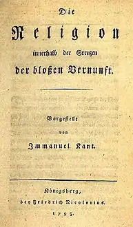 | (بالألمانية: Die Religion innerhalb der Grenzen der bloßen Vernunft) | |