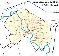 | الديوانية | الشامية | الحمزة | عفك | الصلاحية | غماس | المهناوية | الشافعية | السنية | الدغارة | الشنافية | ال بدير| سومر| السدير | نفر | سيد طالب | ||