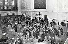 | جورج ب. كورتيلو [الإنجليزية]، وزير الخزانة الأمريكي، يقبل تحويل أموال فدرالية إلى بنوك نيويورك. ومورجان يقنع مديرى البنوك بدعم بورصة نيويورك عن طريق ضخ مبالغ مالية تصل إلى 23 مليون دولار لتفادى الإغلاق المبكر. | |