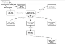 مخطط انسيابي يوضح تاريخ الحركة الفاشية البريطانية المبكرة