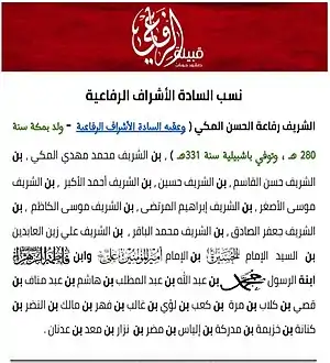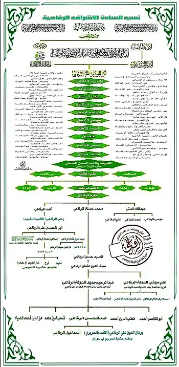 - نسب السادة الآشراف الرفاعية ( الرفاعي ) الحسينيين نسخة محفوظة 1 أغسطس 2020 على موقع واي باك مشين.