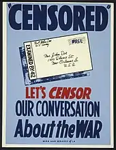|CitationClass=تم تجاهله (مساعدة) - "Civilian Agency Records: Records of the Office of Censorship (RG 216)". National Archives and Records Administration. مؤرشف من الأصل في 4 ديسمبر 2017. اطلع عليه بتاريخ 22 نوفمبر 2010. الوسيط