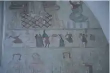 تذكر القصص القديمة في الدنمارك الرقصة الدائرية المغلقة والتي يمكن أن تتحول إلى سلسلة رقص. تُظهر لوحة جدارية في كنيسة أورسليف في زيلندا منذ حوالي عام 1400 تسعة أشخاص، رجال ونساء، يرقصون في صف واحد. يحمل القائد وبعض الأشخاص الآخرين في السلسلة باقات من الزهور. في حالة رقصات النساء، قد يكون هناك رجل قام بدور القائد. [18] [19] في السويد ، غالبًا ما تذكر أغاني العصور الوسطى الرقص. يتم تشكيل سلسلة طويلة، حيث يغني القائد الآيات ويضبط الوقت بينما ينضم الراقصون الآخرون في الجوقة. [20]