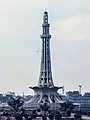 منارة باكستان (بالأردوية: مينارِ پاكستان) أو برج باكستان هي مئذنة خرسانية بطول 60 متراً في متنزه إقبال في لاهور.[13] بُنيت المنارة على الموقع الذي أصدرت فيه رابطة مسلمي عموم الهند قرار لاهور، مطالبين بإنشاء دولة باكستان. تحتفل باكستان الآن بهذا اليوم كعيد وطني كل عام تحت اسم "يوم باكستان" الذي هو نفس اليوم في عام 1956 الذي أصبحت فيه البلاد أول جمهورية إسلامية في العالم.[14] تم تصميم البناية من قبل محمد ولي الله خان وبُنِيت من قبل شركة ميان عبد الخالق. يبلغ ارتفاع قاعدة البرج حوالي 4 أمتار عن الأرض. وتُشكِّل الـ13 متراً التالية قاعدة منحوتة تُشبه الزهرة، ومن هذه النقطة تتناقص المنارة بشكل تدريجي كلما ارتفعت. تم تشكيل القاعدة الأساسية على شكل نجمة خماسية، وهي تحتوي على أحواض على شكل هلال. وهي مُعززة بالخرسانة، مع أرضيات وجدران مصنوعة من الحجر والرخام.[13]