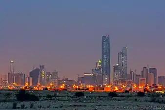 الرياض هي عاصمة المملكة العربية السعودية،[3] وأكبر مدنها وثالث أكبر عاصمة عربية من حيث عدد السكان.[4][5] تقع الرياض وسط شبه الجزيرة العربية في هضبة نجد، على ارتفاع 600 متر فوق مستوى سطح البحر.[6][7] وهي مقر إمارة منطقة الرياض حسب التقسيم الإداري للمناطق السعودية.[8] يسكن مدينة الرياض نحو 6 ملايين نسمة وفق إحصائيات عام 2018.[9][10] وتعتبر العاصمة السعودية إحدى أسرع مدن العالم توسعًا،[11] فخلال نصف قرن من نشأتها اتسعت مساحة المدينة الصغيرة إلى 1800 كيلو متر مربع، حتى بلغت 3.115 كم2. في الوقت الحاضر.[6][12]