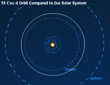 مدار الكوكب 55 كانكري-دي مقارنة بكواكب المجموعة الشمسية