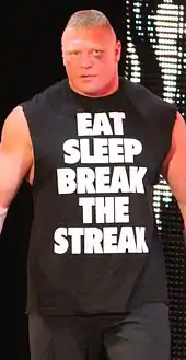 الوسيط|CitationClass=تم تجاهله (مساعدة) - Oliver, Henry Tiger (March 26, 2014). "Why Brock Lesnar won't break The Undertaker's WrestleMania win streak". The Oklahoman. مؤرشف من الأصل في 4 أغسطس 2017. اطلع عليه بتاريخ 16 مارس 2015.