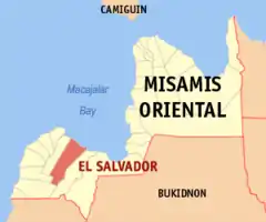 السلفادور (بالإنجليزية: City of El Salvador ) هي مدينة في الفلبين، تتبع ميساميس أوريانتال، بلغ عدد سكانها 44,848 [2][3] نسمة في 2010، تبلغ مساحتها 106.15 كيلومتر مربع، رمزها البريدي هو 9017.