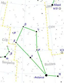 | Alramech, Abramech, α Boötis, 16 Boötes, BD+19°2777, GCTP 3242.00, GJ 541, HD 124897, هيباركوس 69673, HR 5340, LHS 48, SAO 100944. | |