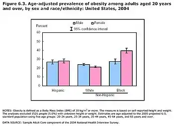 تتوزع السمنة بشكل غير متساوٍ عبر المجموعات العرقية في الولايات المتحدة.[25]