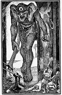 غادر السندباد بغداد إلى البصرة فركب بعض الركاب وسافر معهم وسارت بهم المركب من بحر إلى بحر ومن جزيرة إلى أخرى إلى أن أعلمهم القبطان أنهم وصلوا إلى جبل القرود. فاجتمع عدد كبير منهم وأحاطوا بهم وأخذوا سفينتهم ومتاعهم وتركوهم على اليابسة. ثم دخل السندباد ورفاقه بيتا في وسط الجزيرة وناموا فيها إلى أن دخل عليهم شخص عظيم الخلقة في صفة إنسان أسود وطويل فأمسك واحداً منهم وصار يقلبه ثم تركه وأخذ آخر وهكذا إلى أن أعجبه واحد فذبحه وأكله فارتعب السندباد ورفاقه وقالوا لو غرقنا أو قتلتنا القردة لكان أفضل من هذه القتلة. ثم إنهم فكروا في حل لهذه المشكلة واستطاعوا أن يطمسوا عيناه ويهربوا بفلك صنعوه ولكنه أحضر أنثى مثله وصاروا يرجمونهم بالحجارة إلى أن مات أكثرهم وبقي مع السندباد شخصان فوصلوا إلى جزيرة فناموا وبعد أن استيقظوا وجدوا ثعبانا ضخما فابتلع واحدا منهم وراح إلى حال سبيله ثم عاد إليهم وأكل الشخص الآخر الذي مع السندباد. واستطاع السندباد أن يفلت من الثعبان عندما لف حوله الخشب فلم يستطع الثعبان أن يأكله فسار السندباد إلى آخر الجزيرة فلمح مركبا فأشار إليه فأخذوه معهم وكانت هذه السفينة هي التي تركها في السفرة الثانية فعاد بها إلى بغداد.