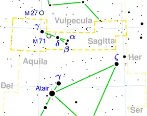 تقع الكوكبة بين كوكبتي العقاب والدجاجة وسط شريط درب التبانة. تحوي العديد من التجمعات النجمية ومنها المجموعة الكروية M71