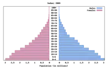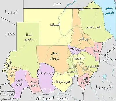 السودان (رسمياً: جمهورية السودان)، هي دولة عربية تقع في شمال شرق أفريقيا. تحدها مصر من الشمالو ليبيا من الشمال الغربي وتشاد من الغرب وجمهورية أفريقيا الوسطى من الجنوب الغربي وجنوب السودان من الجنوب وإثيوبيا من الجنوب الشرقي وأريتريا من الشرق والبحر الأحمر من الشمال الشرقي. يبلغ عدد سكان السودان نحو 43 مليون نسمة (تقدير 2018)[13] وتبلغ مساحتها 1،886،068 كيلومتر مربع (728،215 ميل مربع)، مما يجعلها ثالث أكبر دولة من حيث المساحة في أفريقيا وفي العالم العربي. كانت السودان أكبر دولة في أفريقيا والعالم العربي حسب المساحة قبل انفصال جنوب السودان عام 2011.[14] يقسم نهر النيل أراضي السودان إلى شطرين شرقي وغربي وتقع العاصمة الخرطوم عند ملتقى النيلين الأزرق الأبيض رافدا النيل الرئيسيين. ويتوسط السودان حوض وادي النيل.[15]