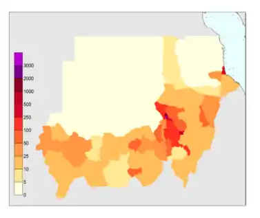 | 9 | شمال كردفان | 190,840 | 2.353.460 | الأبيض |