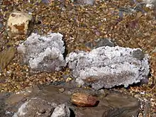 ![]() تتراوح نسبة ملوحة البحر الميت ما بين 35–55%، وهي أعلى نسبة ملوحة بحريّة في العالم، بينما تتراوح نسبة ملوحة البحار والمحيطات في العالم ما بين 04-06%. تحتوي هذه الأملاح على المعادن التالية: كلوريد المغـنيسيوم، كلوريد الصوديوم، كلوريد البوتاسيوم، بروميد المغـنيسيوم، سلفات الكالسيوم وكلوريد الكالسيوم. |