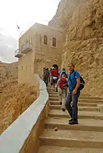 ![]() قضى المسيح عليه السلام 40 يومًا وليلة صائمًا متعبدًا، اعتكف في هذا الجبل ولحقه الشيطان كما ذكر إنجيل لوقا وفي هذا المكان قال المسيح للشيطان: "ليس بالخبز وحده يحيا الإنسان". |
