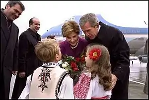 |CitationClass=تم تجاهله (مساعدة) - "President Bush Welcomes President Aliyev of Azerbaijan to the White House". Transcript from The Oval Office. Office of the Press Secretary. April 28, 2005. مؤرشف من الأصل في 7 أغسطس 2017. اطلع عليه بتاريخ 23 أكتوبر 2006. الوسيط
