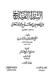 كتاب الشذا الفياح، من علوم ابن الصلاح، كتاب في الحديث النبويّ ومصطلحاته، للشيخ، برهان الدين، إبراهيم بن موسى الأبناسي المتوفى: سنة 802 للهجرة.