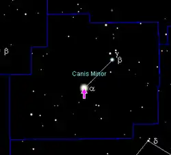 ![]() موقع الشعرى الشامية في كوكبة الكلب الأصغر | |